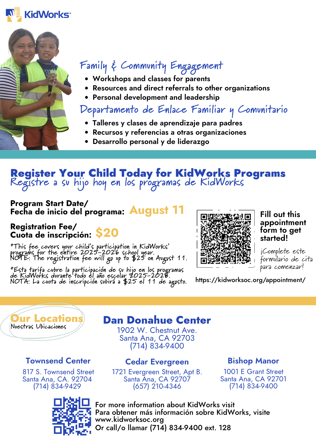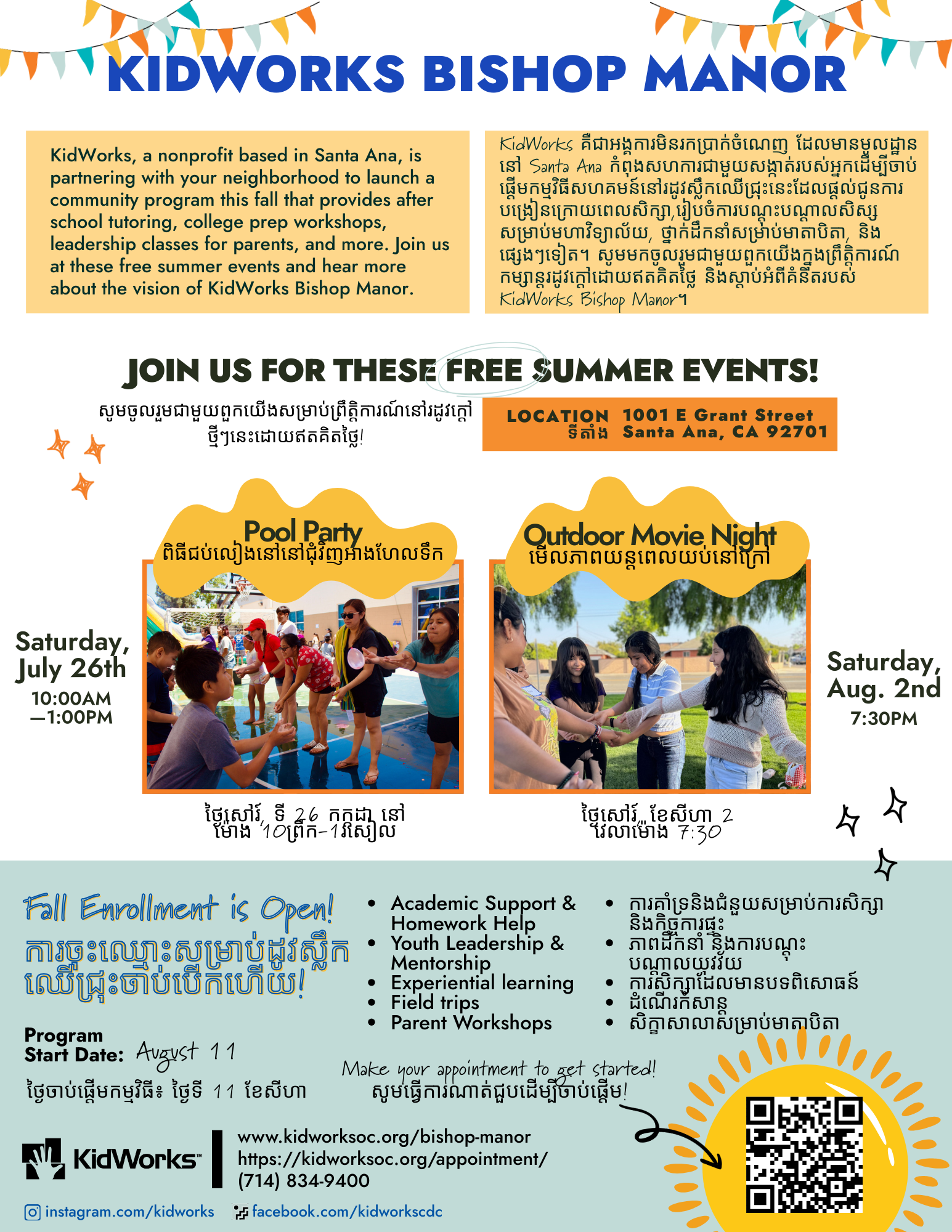 This campaign consisted of social media paid ad campaigns, canvassing via flyers and door hangers, tabling via flyers and merch, and a physical mailer with targeted zip codes around KidWorks. Every design was translated into Spanish and Khmai.