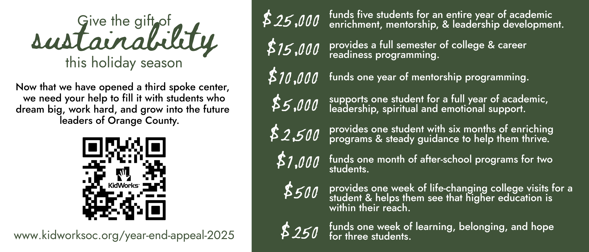 Developed the concept and strategy, created each design, and fully executed the 2025 Year-End Appeal Campaign for KidWorks. This campaign included a physical mailer that consisted of a Christmas Card and a letter curated for two audiences, audience-specific newsletters, paid ad campaigns on facebook and Instagram, LinkedIn posts, focused threads on X, a dedicated webpage, and three separate donation pages to track our revenue by audience.